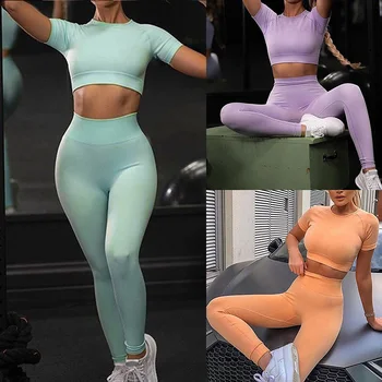 Buy Women 2pcs Seamless Yoga Set Sport Suit Gymwear Workout Clothes Long Sleeve Gym Crop Top High Waist Leggings Fitness Sports Wear and You will Save USD 0.4 or 40% %, Because You Just Pay for 0.60 not Full Price for 1.00